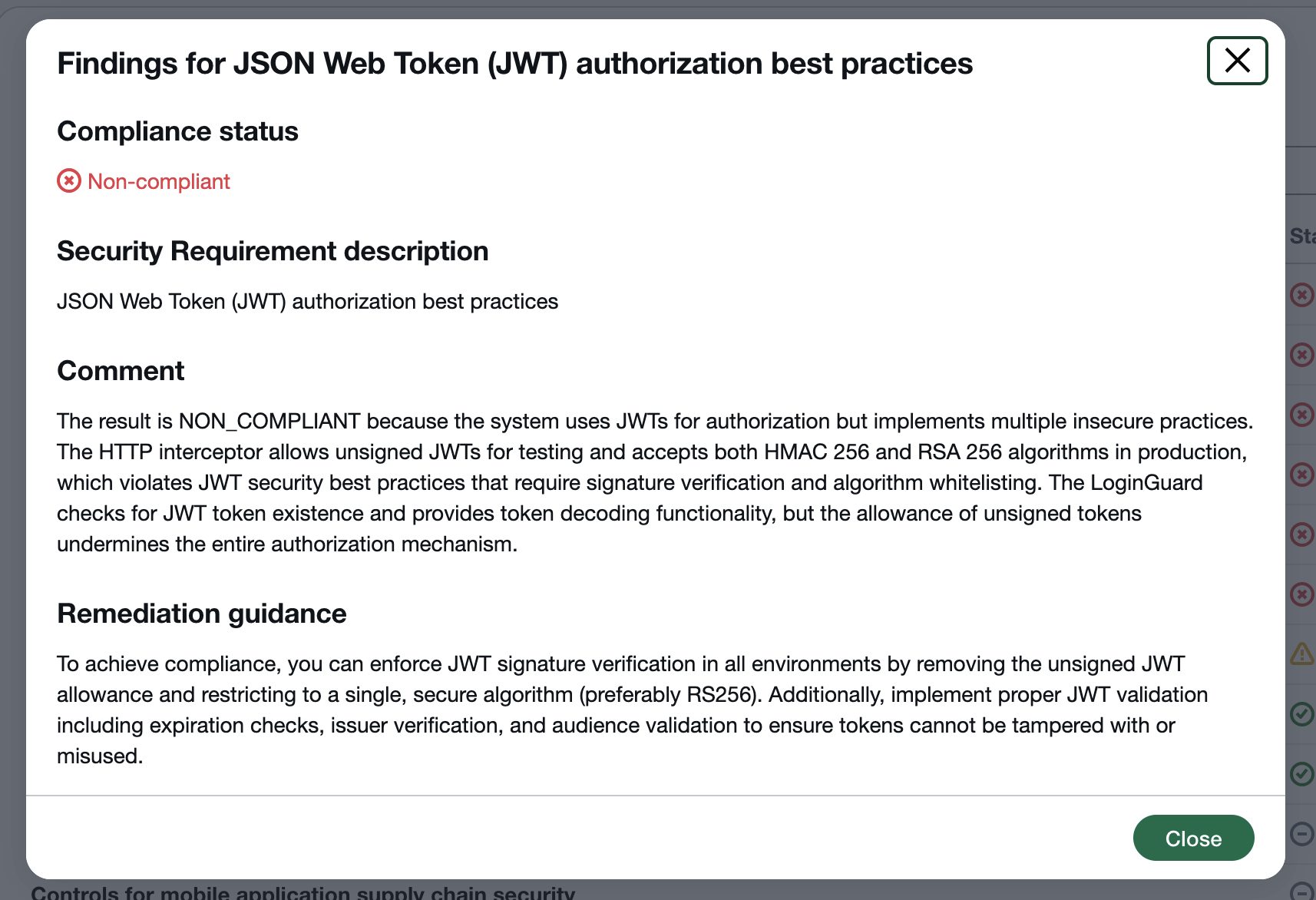 作为提醒,AWS Security Agent通过安全设计审查强调Juice Shop的JWT实现可能不完整。Agent指出签名实现不正确,并且缺少对JWT声明(如audience和issuer)的验证。